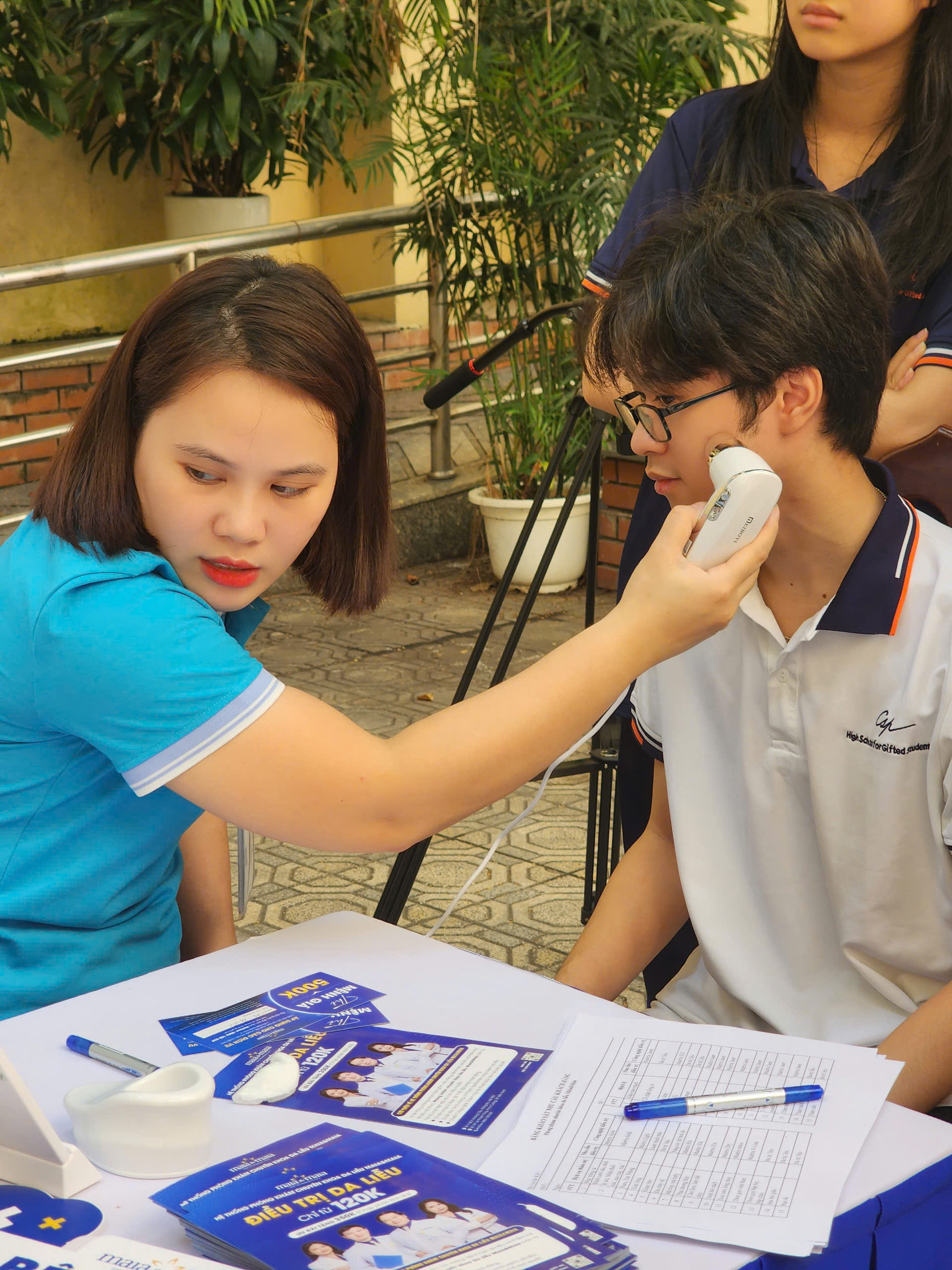 Khám Phá Chăm Sóc Da: Các bác sĩ đã có mặt để soi da và hướng dẫn các bạn cách chăm sóc làn da hiệu quả. Đây là một hoạt động bổ ích, giúp các em nhận thức rõ hơn về tầm quan trọng của việc chăm sóc bản thân, đặc biệt trong giai đoạn tuổi dậy thì.